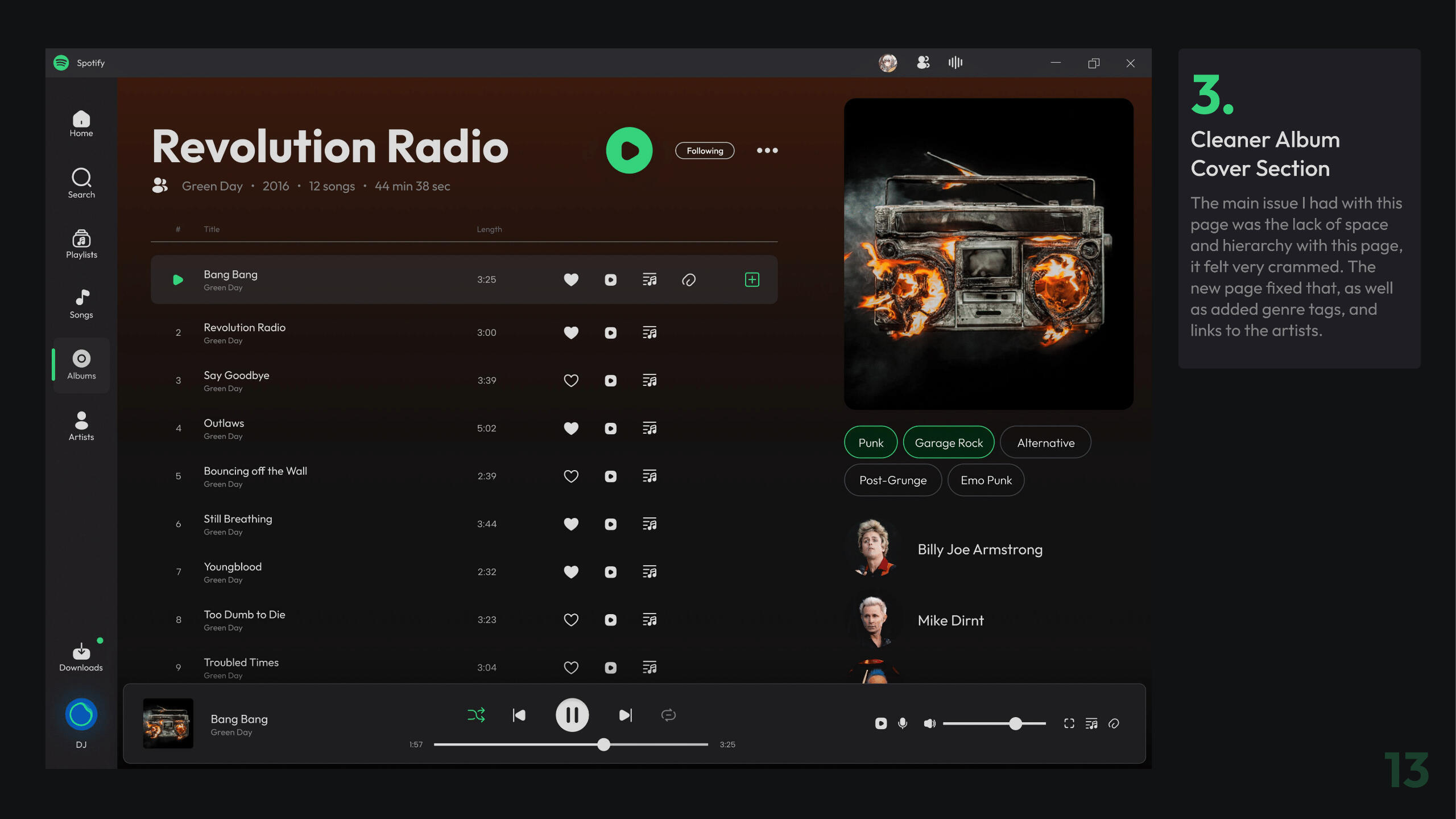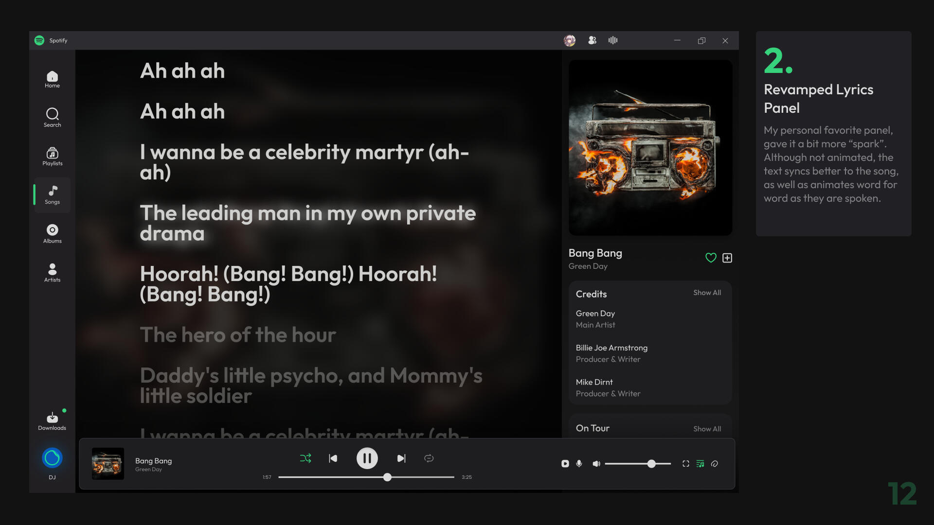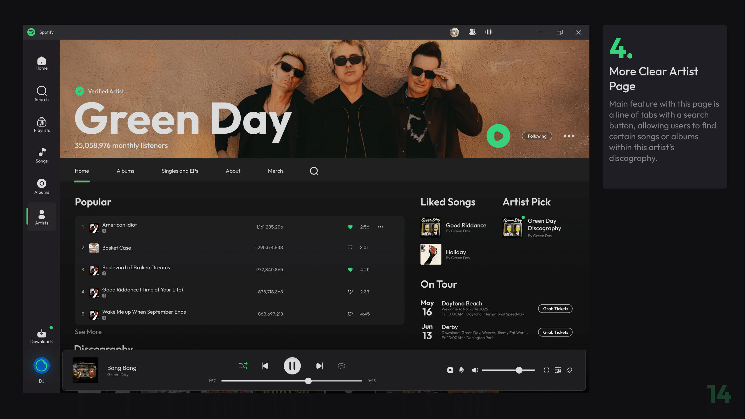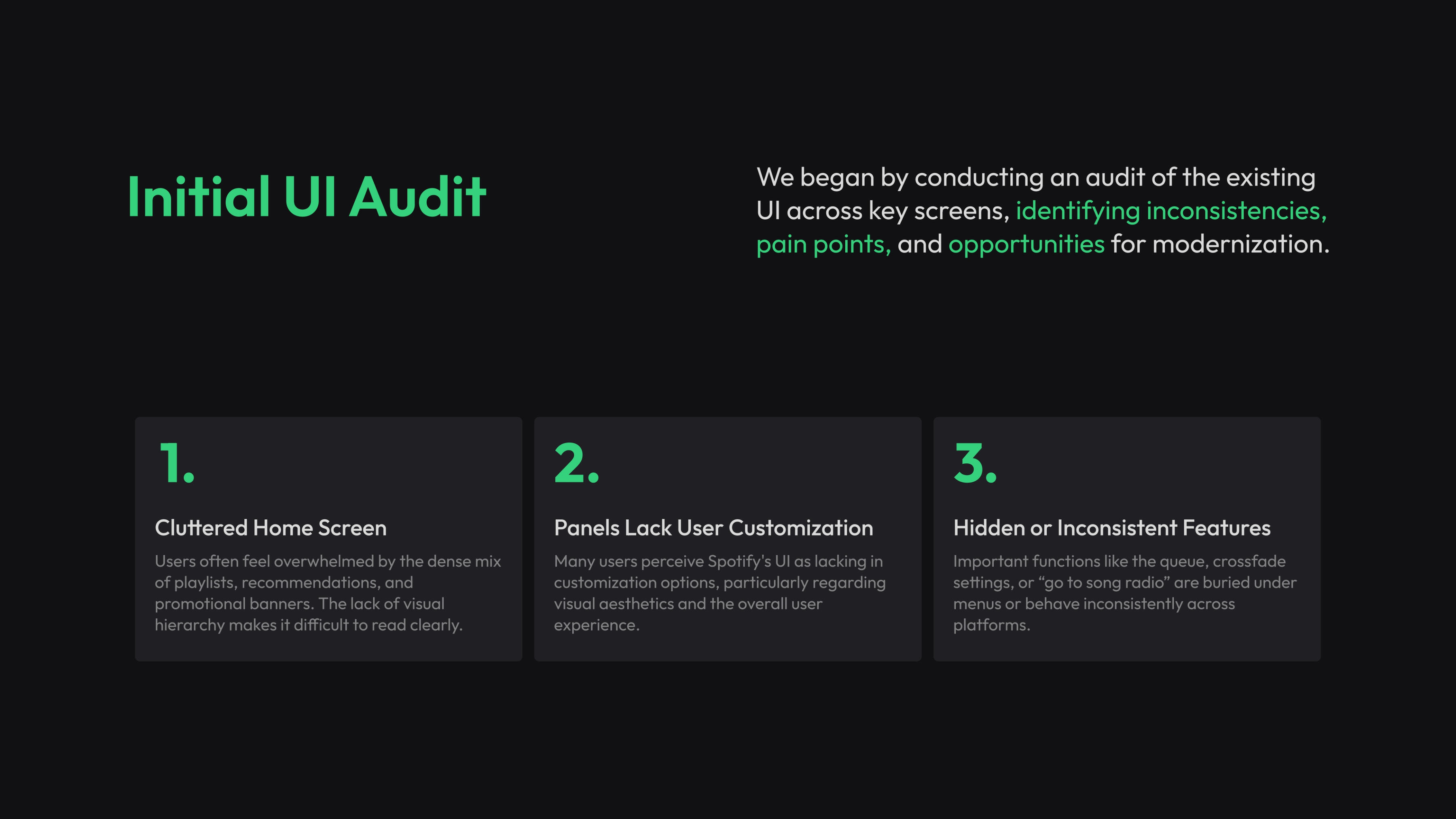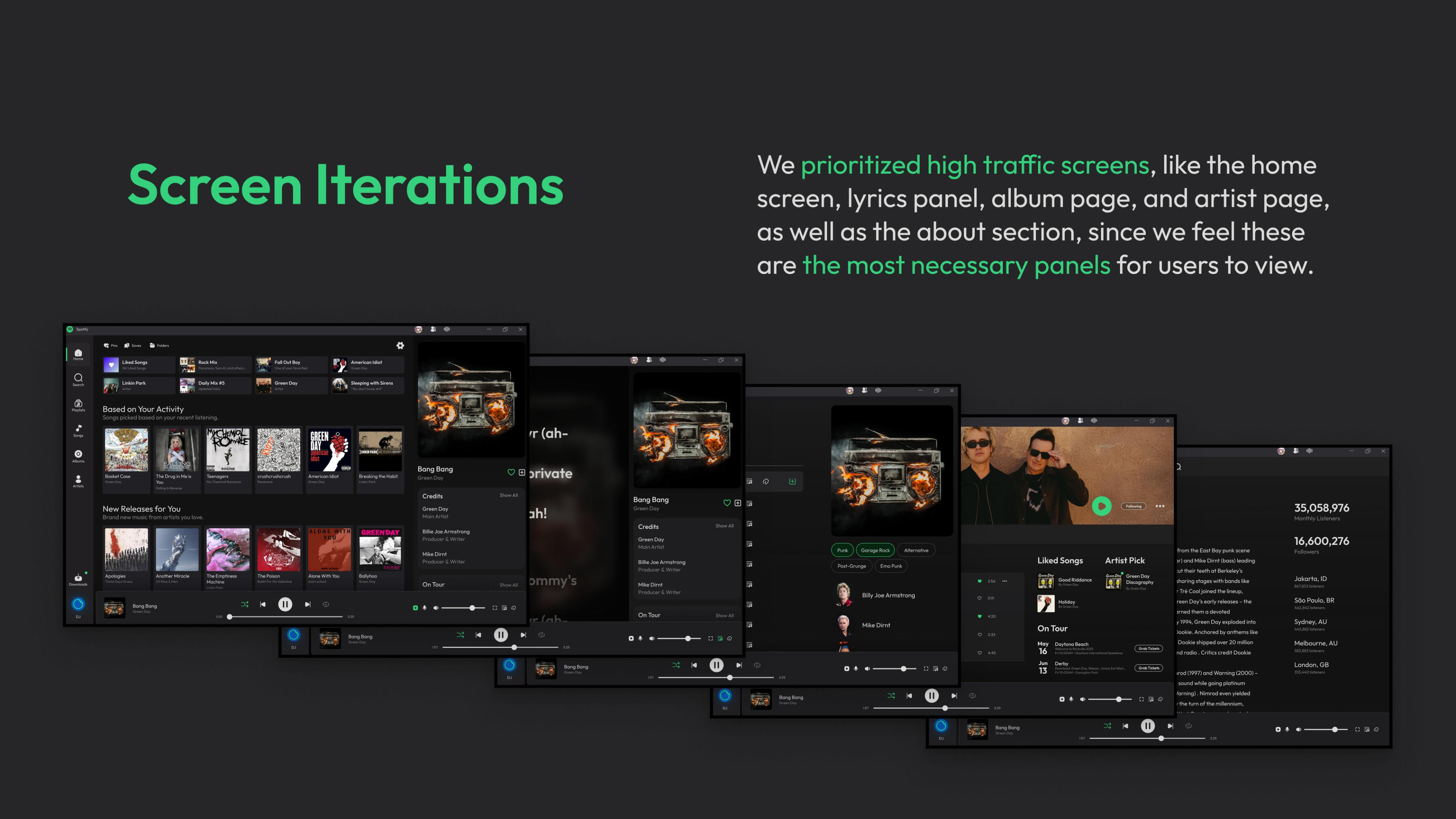 To create a refresh for the desktop version of Spotify that refines its visual identity through an updated color palette, fonts, and a new UI layout.